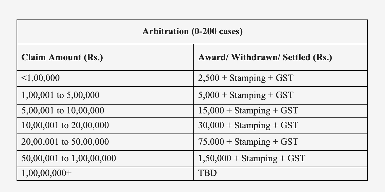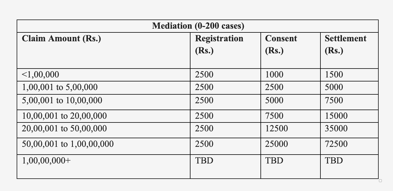 For disputes without a defined claim amount, fees range from Rs 10,000/- to Rs 1,00,000/- per session (up to 3 hours), based on the subject matter of the dispute, mediator’s profile and complexity of the matter.